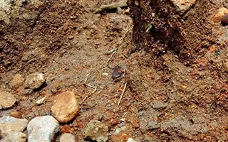 A mixture of loose sand, silt and/or clay, with some gravel and rock.